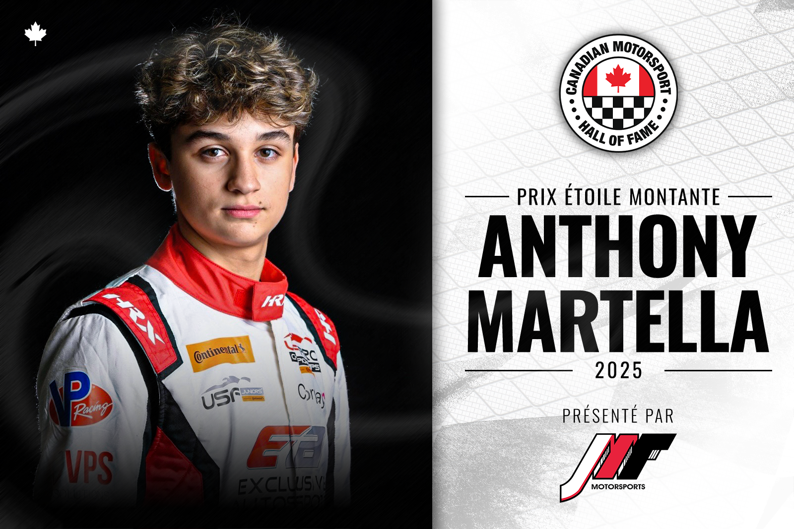 Temple de la Renommée canadienne du sport automobile est fier d’annoncer que Anthony Martella est le lauréat 2025 du prix Étoile montante JMF Motorsports